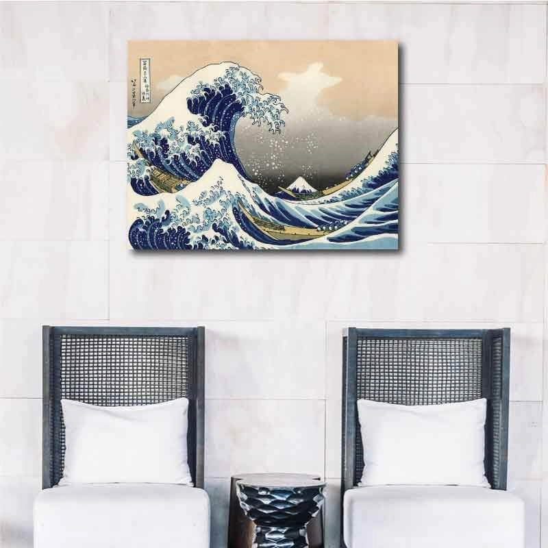 - Αποφύγετε να κρεμάσετε έναν μικρό Πίνακας σε καμβά Katsushika Hokusai - The Great Wave off Kanagawa, σε έναν μεγάλο άδειο τοίχο. Προτιμήστε να τον τοποθετήσετε ανάμεσα σε δύο έπιπλα ή ακόμη και δύο παράθυρα.