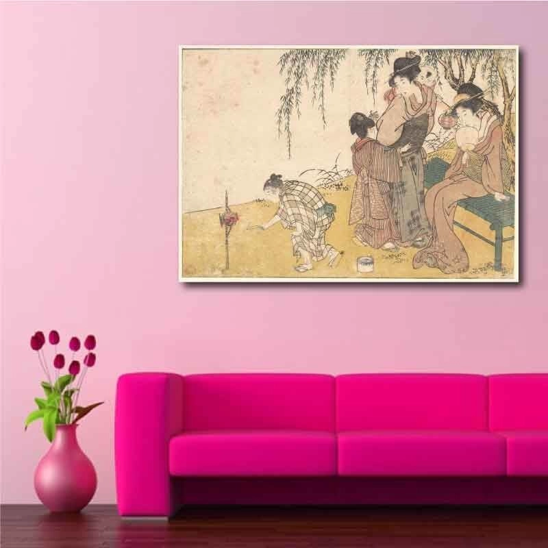- Αποφύγετε να κρεμάσετε έναν μικρό Πίνακας σε καμβά Kitagawa Utamaro - A Child Lighting Fireworks (1801), σε έναν μεγάλο άδειο τοίχο. Προτιμήστε να τον τοποθετήσετε ανάμεσα σε δύο έπιπλα ή ακόμη και δύο παράθυρα.