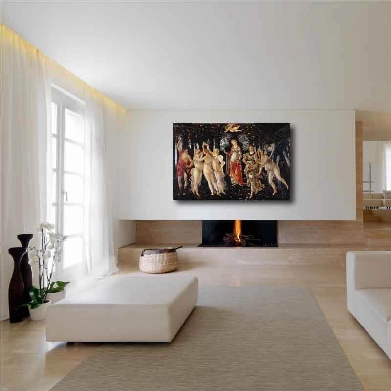 - Χαρίστε ύψος στο δωμάτιο τοποθετώντας Πίνακας σε καμβά Sandro Botticelli - Primavera - 1482, σε κάθετη διάταξη και βάθος με την οριζόντια διάταξή τους. Συνήθως, κρεμάμε τους καμβάδες σε λάθος ύψος με αποτέλεσμα να μην αναδεικνύονται.