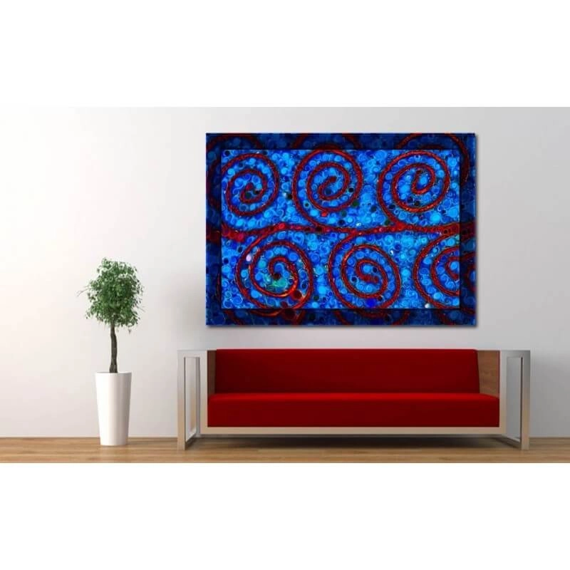 - Αν ένας καμβάς Abstract circles, τοποθετηθεί επάνω από ένα έπιπλο όπως έναν καναπέ, μπουφέ, κάποιο γραφείο κ.α., θα πρέπει να είναι κεντραρισμένος με το συγκεκριμένο έπιπλο. Σε περίπτωση που σε αυτό το έπιπλο υπάρχουν διακοσμητικά αντικείμενα, δε θα πρέπει να βρίσκονται σε θέσεις που να κρύβουν μέρος του καμβά Abstract circles. Πολύ σημαντικό είναι να διατηρείται η οπτική ισορροπία.