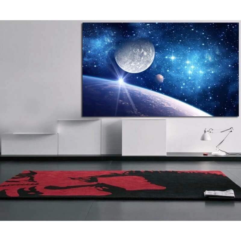 - Αν ένας καμβάς με γη και σελήνη, τοποθετηθεί επάνω από ένα έπιπλο όπως έναν καναπέ, μπουφέ, κάποιο γραφείο κ.α., θα πρέπει να είναι κεντραρισμένος με το συγκεκριμένο έπιπλο. Σε περίπτωση που σε αυτό το έπιπλο υπάρχουν διακοσμητικά αντικείμενα, δε θα πρέπει να βρίσκονται σε θέσεις που να κρύβουν μέρος του καμβά με γη και σελήνη. Πολύ σημαντικό είναι να διατηρείται η οπτική ισορροπία.