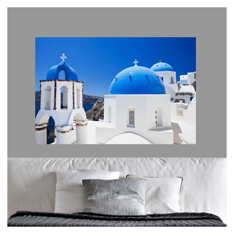 - Αποφύγετε να κρεμάσετε έναν μικρό καμβά με εκκλησία στη Σαντορίνη, σε έναν μεγάλο άδειο τοίχο. Προτιμήστε να τον τοποθετήσετε ανάμεσα σε δύο έπιπλα ή ακόμη και δύο παράθυρα.