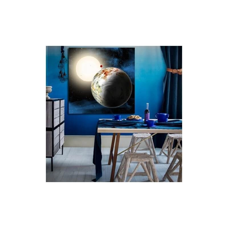 - Αν ένας πίνακας σε καμβάς με ήλιο γη και φεγγάρι, τοποθετηθεί επάνω από ένα έπιπλο όπως έναν καναπέ, μπουφέ, κάποιο γραφείο κ.α., θα πρέπει να είναι κεντραρισμένος με το συγκεκριμένο έπιπλο. Σε περίπτωση που σε αυτό το έπιπλο υπάρχουν διακοσμητικά αντικείμενα, δε θα πρέπει να βρίσκονται σε θέσεις που να κρύβουν μέρος του καμβά με ήλιο γη και φεγγάρι. Πολύ σημαντικό είναι να διατηρείται η οπτική ισορροπία.