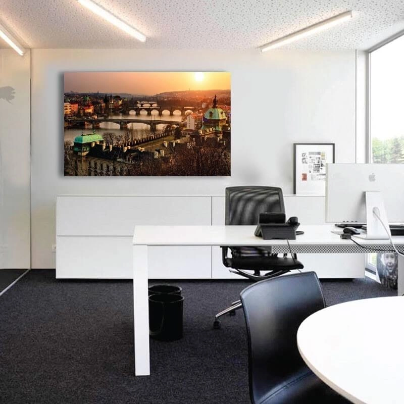 - Αν ένας καμβάς με την Πράγα, τοποθετηθεί επάνω από ένα έπιπλο όπως έναν καναπέ, μπουφέ, κάποιο γραφείο κ.α., θα πρέπει να είναι κεντραρισμένος με το συγκεκριμένο έπιπλο. Σε περίπτωση που σε αυτό το έπιπλο υπάρχουν διακοσμητικά αντικείμενα, δε θα πρέπει να βρίσκονται σε θέσεις που να κρύβουν μέρος του καμβά με την Πράγα. Πολύ σημαντικό είναι να διατηρείται η οπτική ισορροπία.