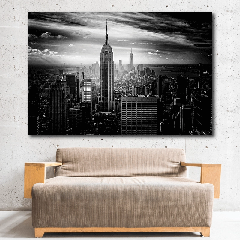 - Αν ένας καμβάς Πόλη ασπρόμαυρη, τοποθετηθεί επάνω από ένα έπιπλο όπως έναν καναπέ, μπουφέ, κάποιο γραφείο κ.α., θα πρέπει να είναι κεντραρισμένος με το συγκεκριμένο έπιπλο. Σε περίπτωση που σε αυτό το έπιπλο υπάρχουν διακοσμητικά αντικείμενα, δε θα πρέπει να βρίσκονται σε θέσεις που να κρύβουν μέρος του καμβά Πόλη ασπρόμαυρη. Πολύ σημαντικό είναι να διατηρείται η οπτική ισορροπία.