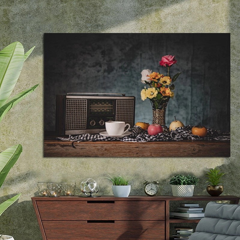 Πίνακας σε καμβά Λουλούδια και ραδιόφωνο