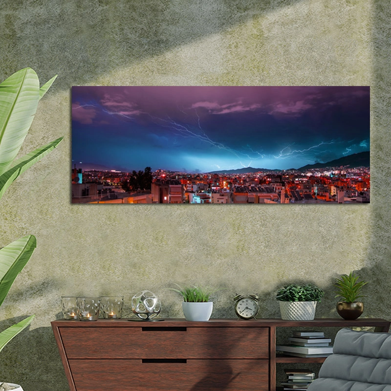 Πίνακας σε καμβα για να γεμίσει χρώματα το δωμάτιο. Οι καμβάδες με Καταιγίδα στην Αθήνα θα ζωντανέψουν το χώρο και θα δώσουν μια ευχάριστη νότα.