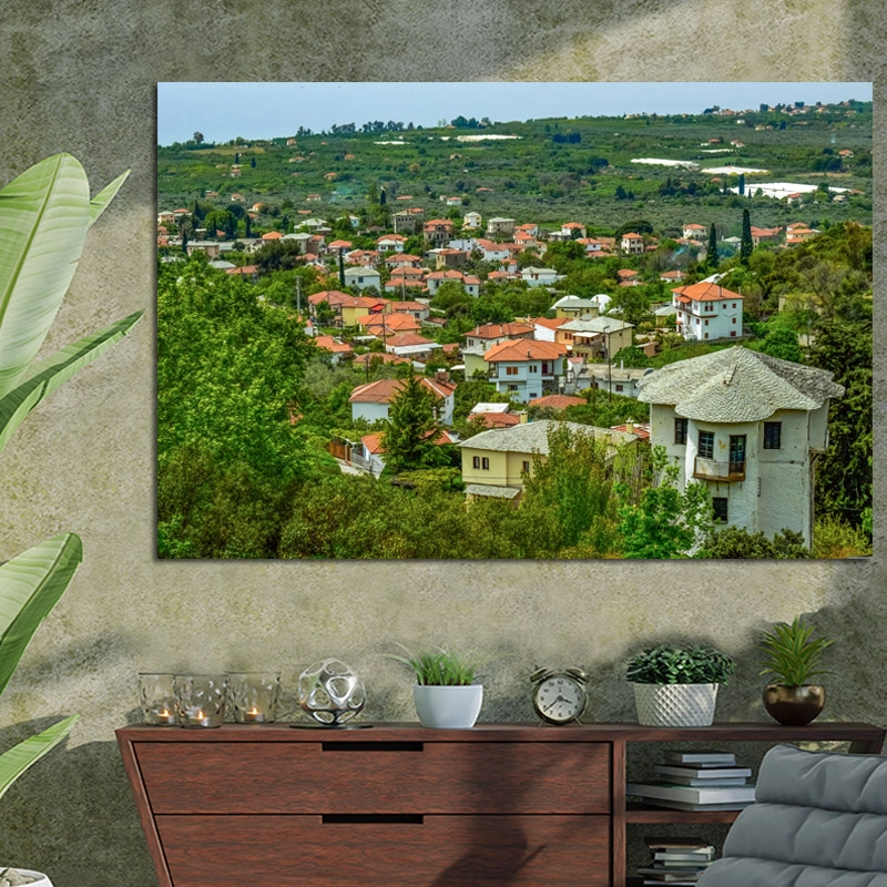 Πίνακας σε καμβα για να γεμίσει χρώματα το δωμάτιο. Οι καμβάδες με Πήλιο Χωριό θα ζωντανέψουν το χώρο και θα δώσουν μια ευχάριστη νότα.