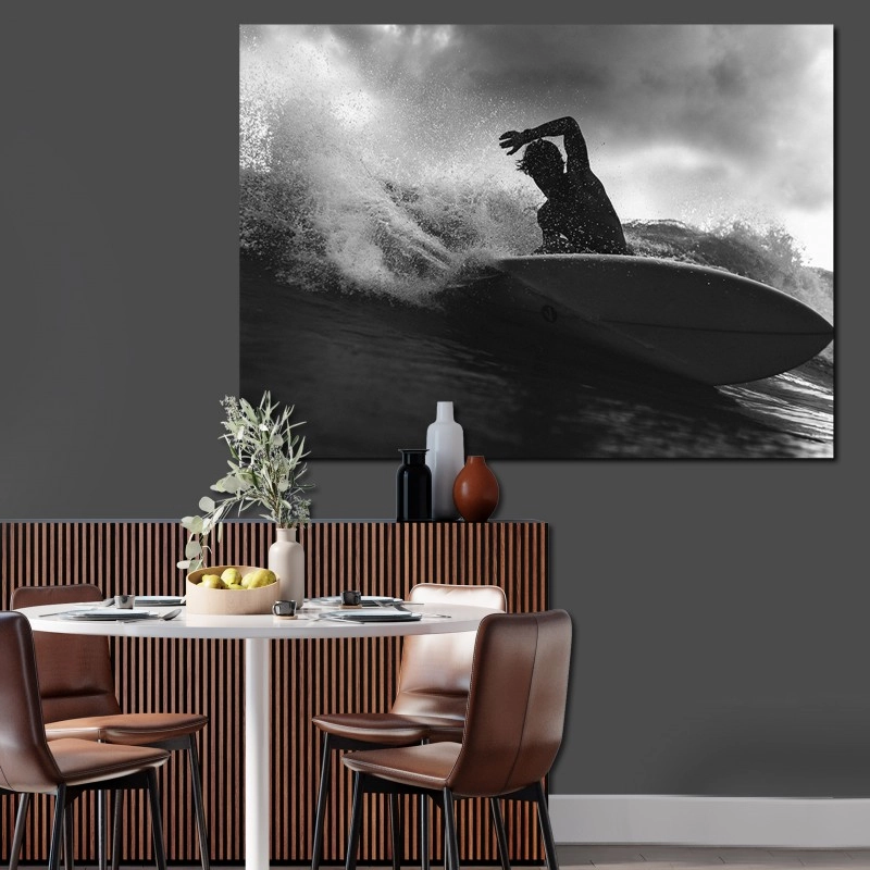 Πίνακας σε καμβα για να γεμίσει χρώματα το δωμάτιο. Οι καμβάδες με Ασπρόμαυρος σέρφερ θα ζωντανέψουν το χώρο και θα δώσουν μια ευχάριστη νότα.