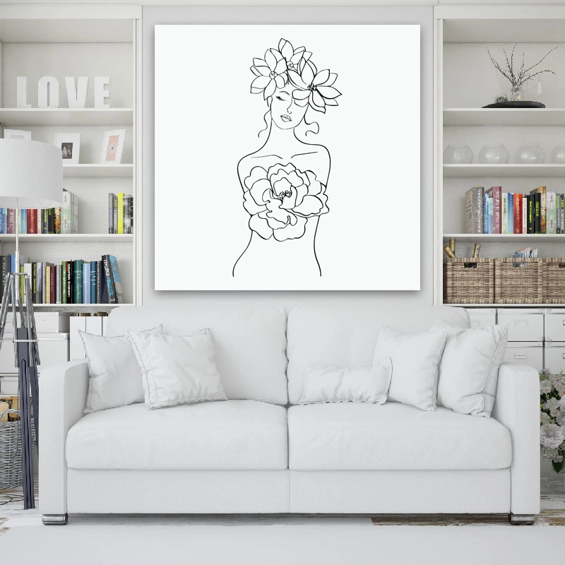 Πίνακας σε καμβά Minimal Woman Adorned with Flowers