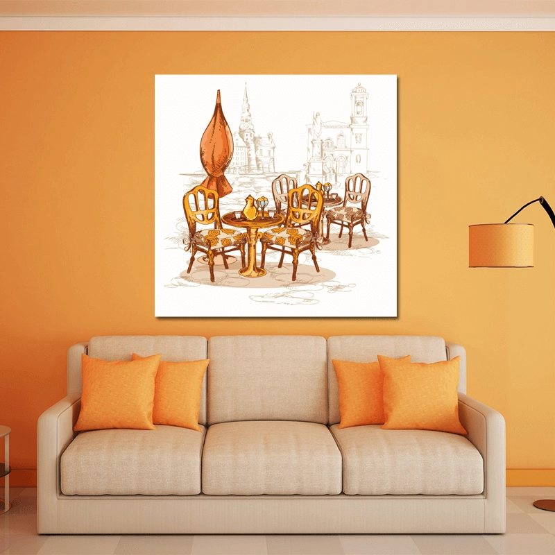 Δεν χρειάζεται να δημιουργηθεί ένα χαοτικό αποτέλεσμα υπερφορτώνοντας τους τοίχους με Πίνακες σε καμβά με Street Cafe, προκειμένου να τους διακοσμήσετε. Το μυστικό της επιτυχίας στους καμβάδες βρίσκεται σε μερικές απλές τεχνικές.