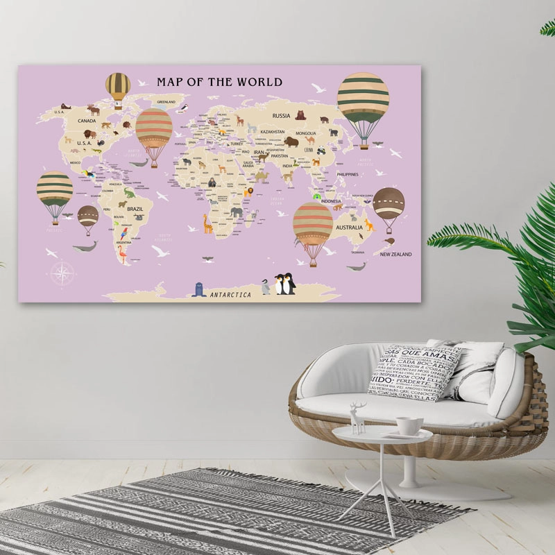 Πίνακας σε καμβά Παιδικός Χάρτης με τα Ζώα του Κόσμου