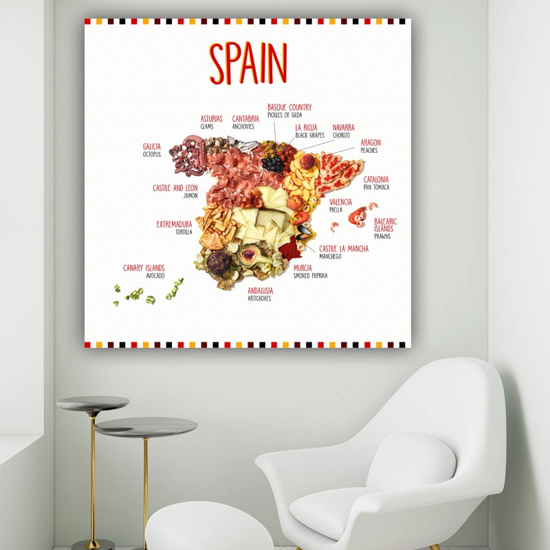 Στο Stickerman θα βρείτε το αγαπημένο σας σχέδιο Πίνακας σε καμβά Χάρτης Ισπανία με Φαγητά στις διαστάσεις και το υλικό που επιθυμείτε. Εφόσον το επιτρέπει η ανάλυση της φωτογραφίας Πίνακας σε καμβά Χάρτης Ισπανία με Φαγητά που έχουμε στην τεράστια συλλογή μας, μπορεί να εκτυπωθεί σε Παραβάν, Ταπετσαρία, Αυτοκόλλητο, Πίνακα, Κούπα, Ρολοκουρτίνα.