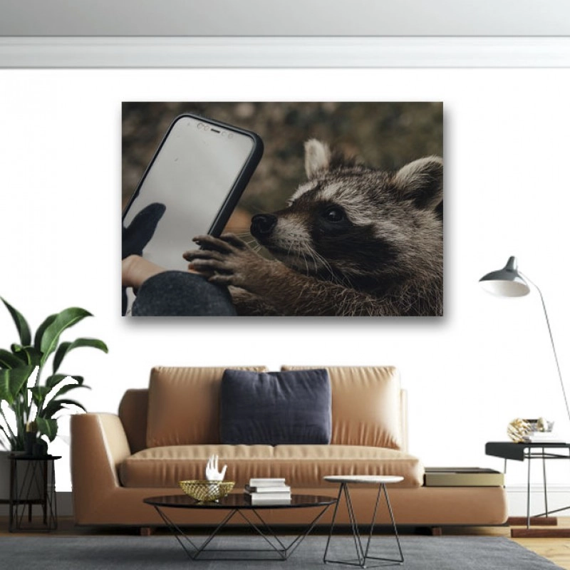 Στο Stickerman θα βρείτε το αγαπημένο σας σχέδιο Πίνακας σε καμβά Ρακούν με κινητό στις διαστάσεις και το υλικό που επιθυμείτε. Εφόσον το επιτρέπει η ανάλυση της φωτογραφίας Πίνακας σε καμβά Ρακούν με κινητό που έχουμε στην τεράστια συλλογή μας, μπορεί να εκτυπωθεί σε Παραβάν, Ταπετσαρία, Αυτοκόλλητο, Πίνακα, Κούπα, Ρολοκουρτίνα.