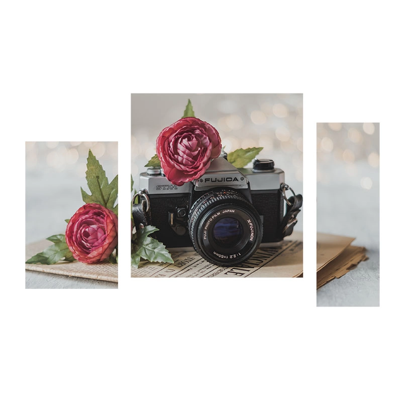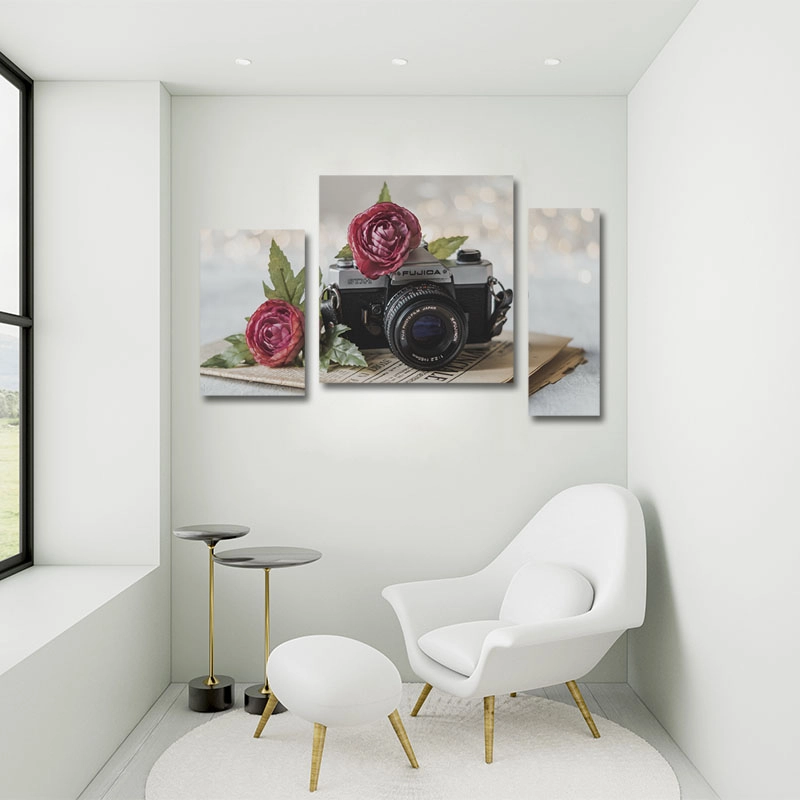 Τρίπτυχος πίνακας Φωτογραφική μηχανή και Τριαντάφυλλα