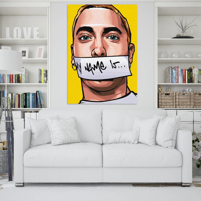 Στο Stickerman θα βρείτε το αγαπημένο σας σχέδιο Πίνακας σε καμβά Eminem Slim Shady στις διαστάσεις και το υλικό που επιθυμείτε. Εφόσον το επιτρέπει η ανάλυση της φωτογραφίας Πίνακας σε καμβά Eminem Slim Shady που έχουμε στην τεράστια συλλογή μας, μπορεί να εκτυπωθεί σε Παραβάν, Ταπετσαρία, Αυτοκόλλητο, Πίνακα, Κούπα, Ρολοκουρτίνα.