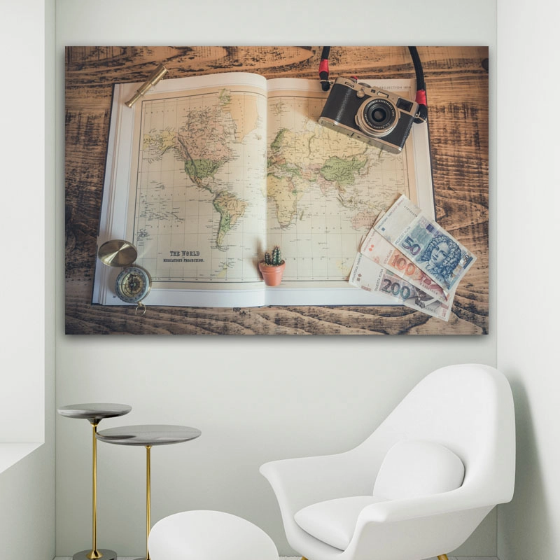 Πίνακας σε καμβά Χάρτης και Ταξιδιωτικός Εξοπλισμός