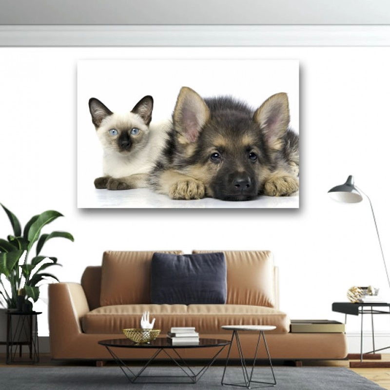 Στο Stickerman θα βρείτε το αγαπημένο σας σχέδιο Πίνακας σε καμβά Σκύλος με γάτα στις διαστάσεις και το υλικό που επιθυμείτε. Εφόσον το επιτρέπει η ανάλυση της φωτογραφίας Πίνακας σε καμβά Σκύλος με γάτα που έχουμε στην τεράστια συλλογή μας, μπορεί να εκτυπωθεί σε Παραβάν, Ταπετσαρία, Αυτοκόλλητο, Πίνακα, Κούπα, Ρολοκουρτίνα.