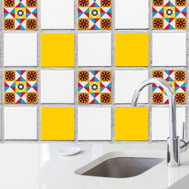 Πληροφορίες: Τα Αυτοκόλλητα πλακάκια κουζίνας Μοτίβο 23 με μοντέρνο σχέδιο που χαρίζει ζωντάνια, φρεσκάρει και αλλάζει εντυπωσιακά την κουζίνα σας. Το αυτοκόλλητο είναι λεπτό και μαλακό, φαίνεται στο τοίχο σαν ζωγραφιά και όταν εσείς θέλετε το ξεκολλάτε εύκολα, δεν αφήνει κατάλοιπα κόλλας.
