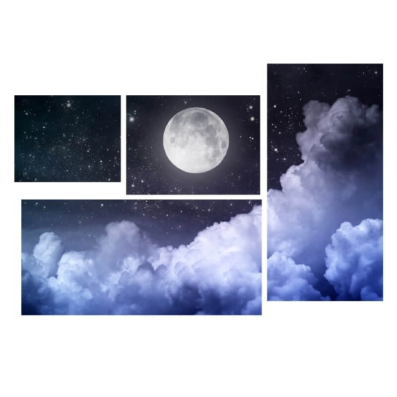Οι τετράπτυχοι πίνακες με πανσέληνο και σύννεφα, εκφράζουν καλλιτεχνικές ανησυχίες για παιδιά και μεγάλους, φροντίζοντας με έναν ιδιαίτερο τρόπο για την αισθητική και την διακόσμηση του χώρου στον οποίο τοποθετούνται. Οι καμβάδες, αποτελούν επίσης μια πολύ εύκολη λύση, για να φροντίσετε τους τοίχους σας δίνοντας μια διαφορετική νότα στο χώρο.