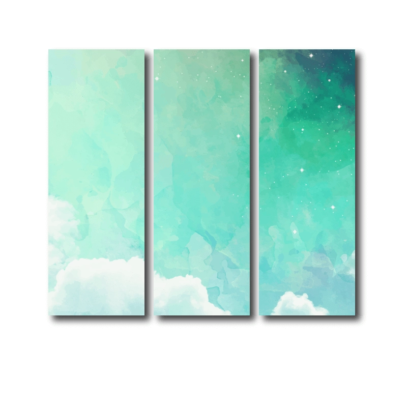 Οι τρίπτυχοι πίνακες με Γαλαζοπράσινο ουρανό εκφράζουν καλλιτεχνικές ανησυχίες για παιδιά και μεγάλους, φροντίζοντας με έναν ιδιαίτερο τρόπο για την αισθητική και την διακόσμηση του χώρου στον οποίο τοποθετούνται. Οι καμβάδες, αποτελούν επίσης μια πολύ εύκολη λύση, για να φροντίσετε τους τοίχους σας δίνοντας μια διαφορετική νότα στο χώρο.