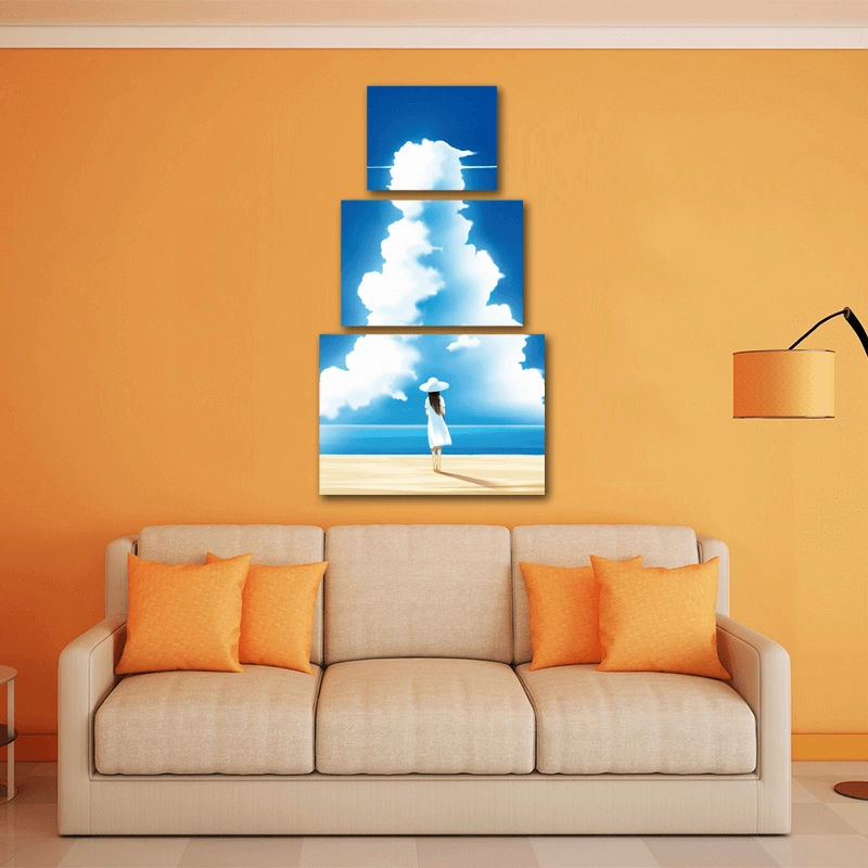 - Χαρίστε ύψος στο δωμάτιο τοποθετώντας τρίπτυχους πίνακες με Κορίτσι Στη Θάλασσα, σε κάθετη διάταξη και βάθος με την οριζόντια διάταξή τους. Συνήθως, κρεμάμε τους καμβάδες σε λάθος ύψος με αποτέλεσμα να μην αναδεικνύονται.