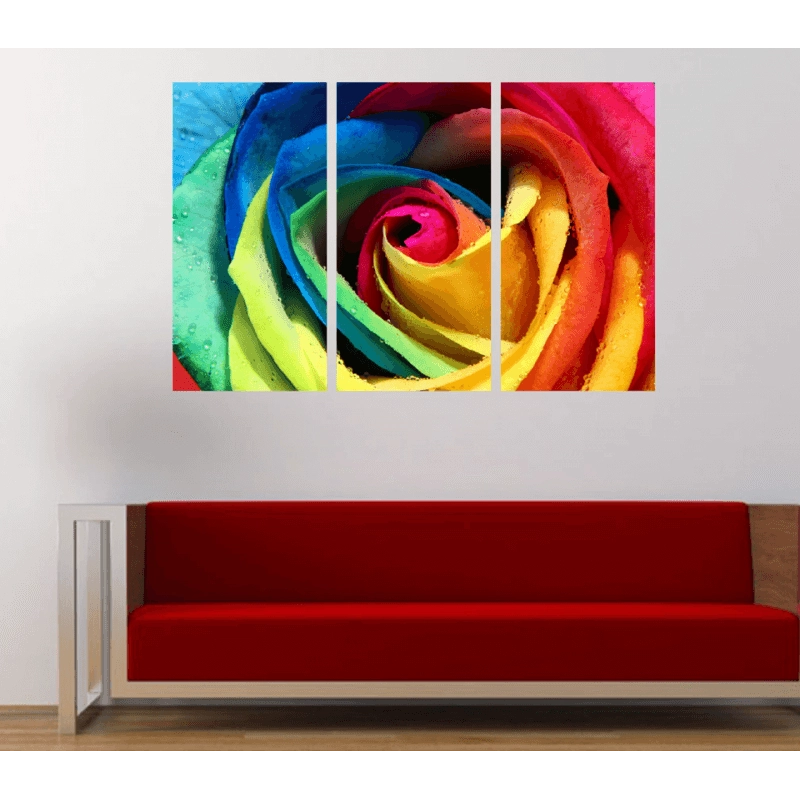 Οι τρίπτυχοι πίνακες με πολύχρωμο τριαντάφυλλο, εκφράζουν καλλιτεχνικές ανησυχίες για παιδιά και μεγάλους, φροντίζοντας με έναν ιδιαίτερο τρόπο για την αισθητική και την διακόσμηση του χώρου στον οποίο τοποθετούνται. Οι καμβάδες, αποτελούν επίσης μια πολύ εύκολη λύση, για να φροντίσετε τους τοίχους σας δίνοντας μια διαφορετική νότα στο χώρο.
