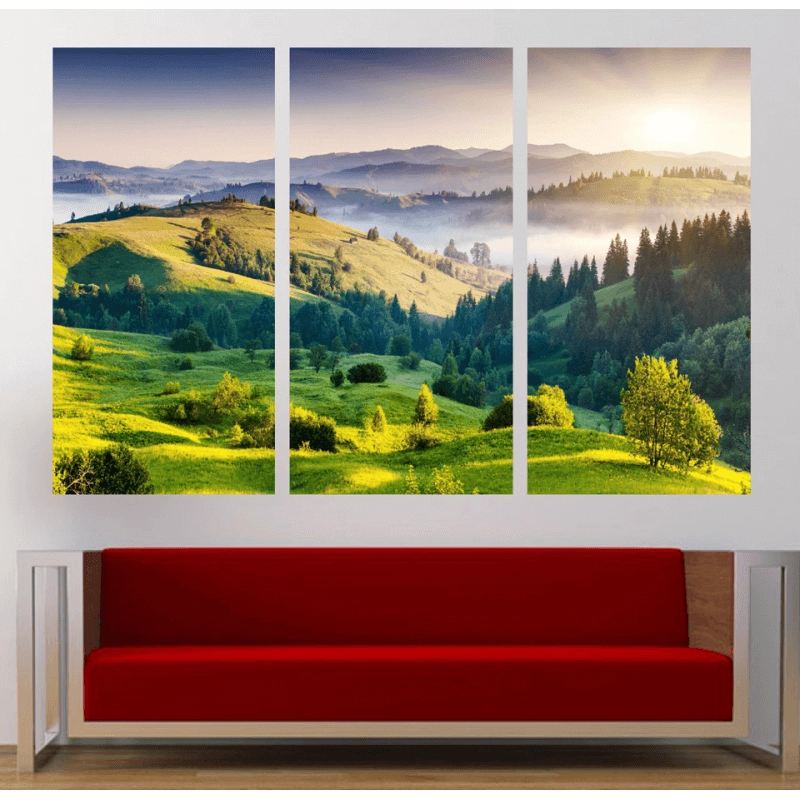 Οι τρίπτυχοι πίνακες με πράσινα βουνά, εκφράζουν καλλιτεχνικές ανησυχίες για παιδιά και μεγάλους, φροντίζοντας με έναν ιδιαίτερο τρόπο για την αισθητική και την διακόσμηση του χώρου στον οποίο τοποθετούνται. Οι καμβάδες, αποτελούν επίσης μια πολύ εύκολη λύση, για να φροντίσετε τους τοίχους σας δίνοντας μια διαφορετική νότα στο χώρο.