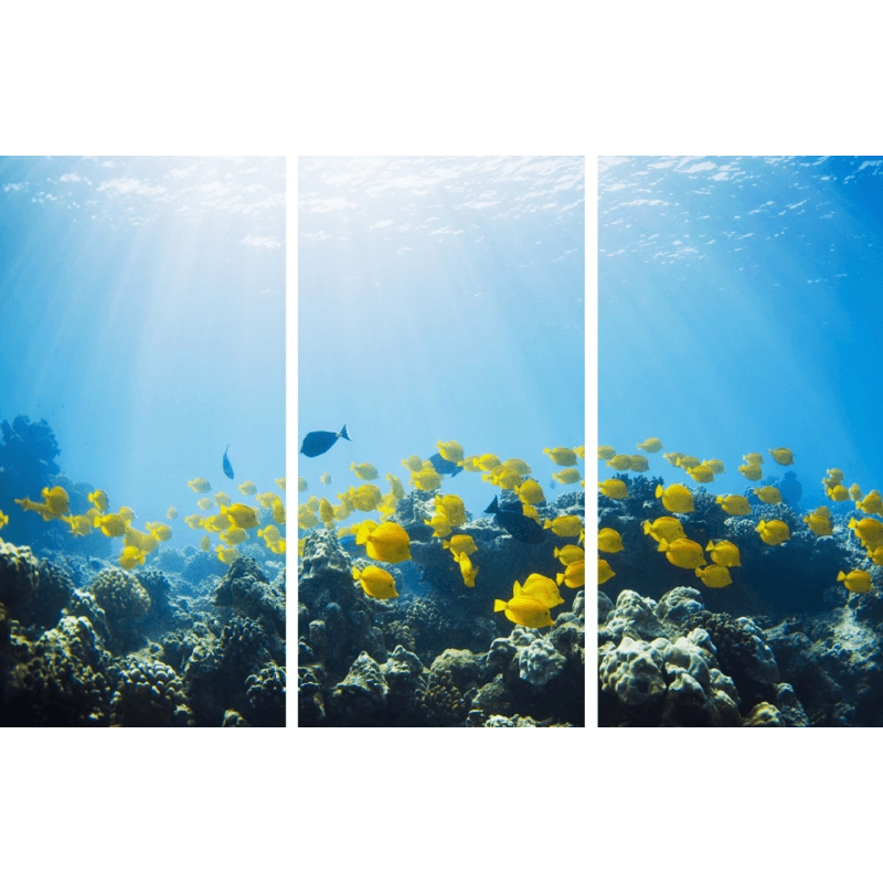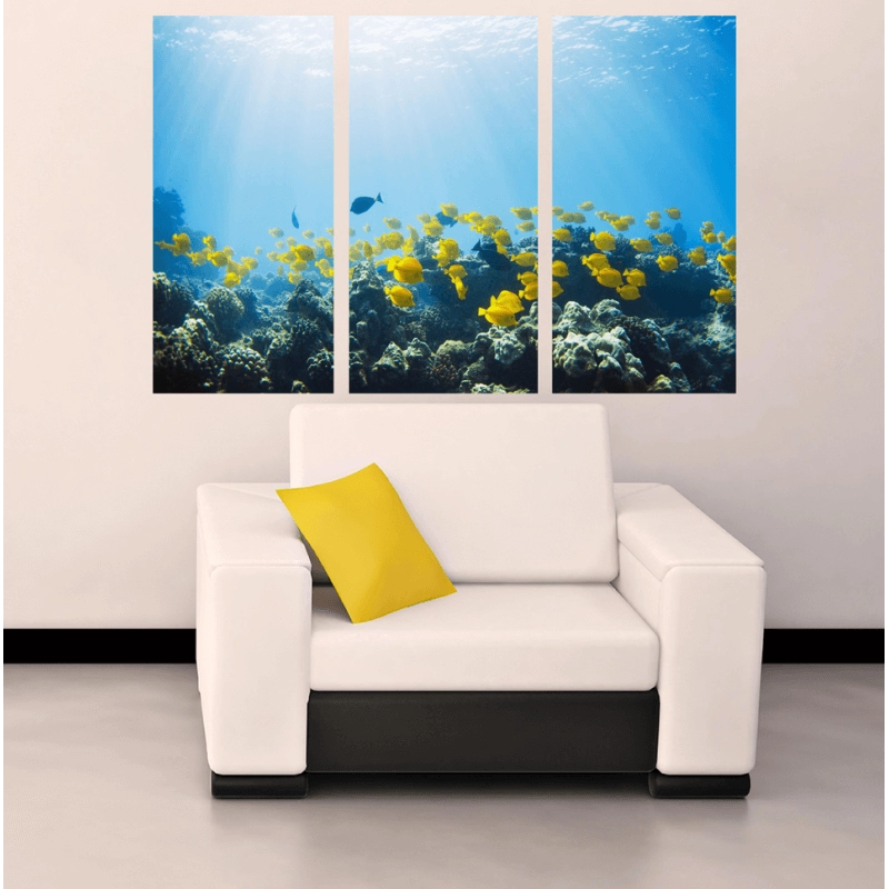 Οι τρίπτυχοι πίνακες με βυθό και ψάρια, εκφράζουν καλλιτεχνικές ανησυχίες για παιδιά και μεγάλους, φροντίζοντας με έναν ιδιαίτερο τρόπο για την αισθητική και την διακόσμηση του χώρου στον οποίο τοποθετούνται. Οι καμβάδες, αποτελούν επίσης μια πολύ εύκολη λύση, για να φροντίσετε τους τοίχους σας δίνοντας μια διαφορετική νότα στο χώρο.