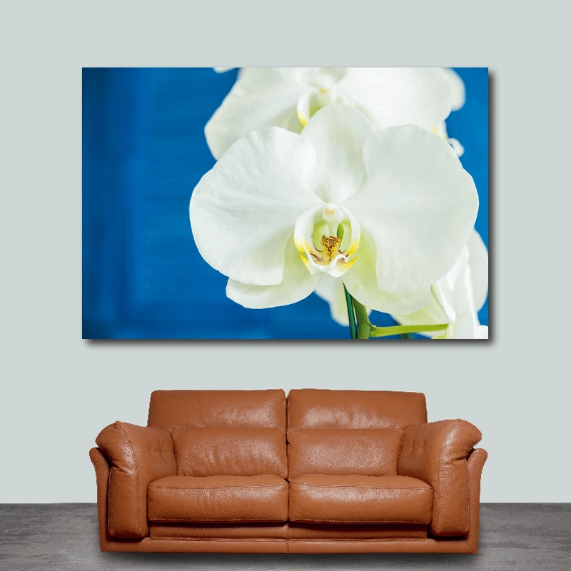 - Φροντίστε, έτσι ώστε να κρατάτε τους καμβάδες με Λευκή ορχιδέα με μπλε φόντο, στο ύψος του βλέμματος, απολαμβάνοντάς τoυς εξίσου όταν είστε όρθιοι αλλά και καθιστοί.