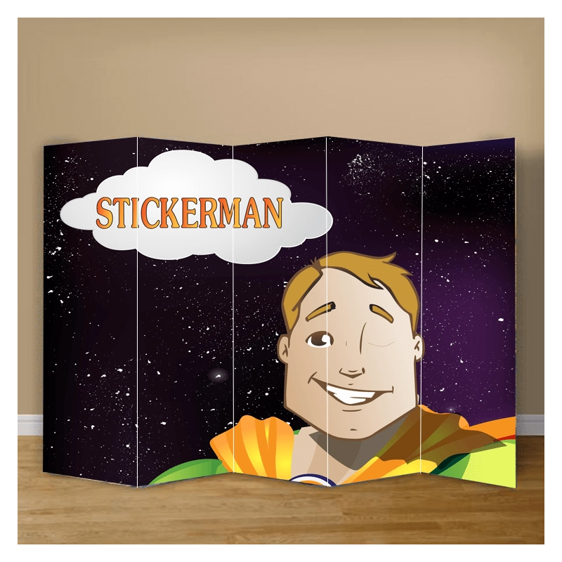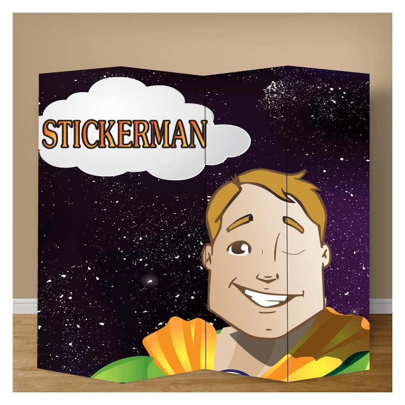 Στο Stickerman θα βρείτε υφασμάτινα παιδικά παραβάν με τον stickerman προφίλ σε διαστάσεις που διαλέγετε εσείς.