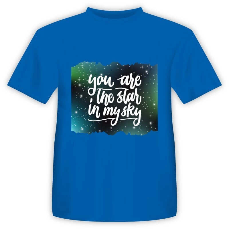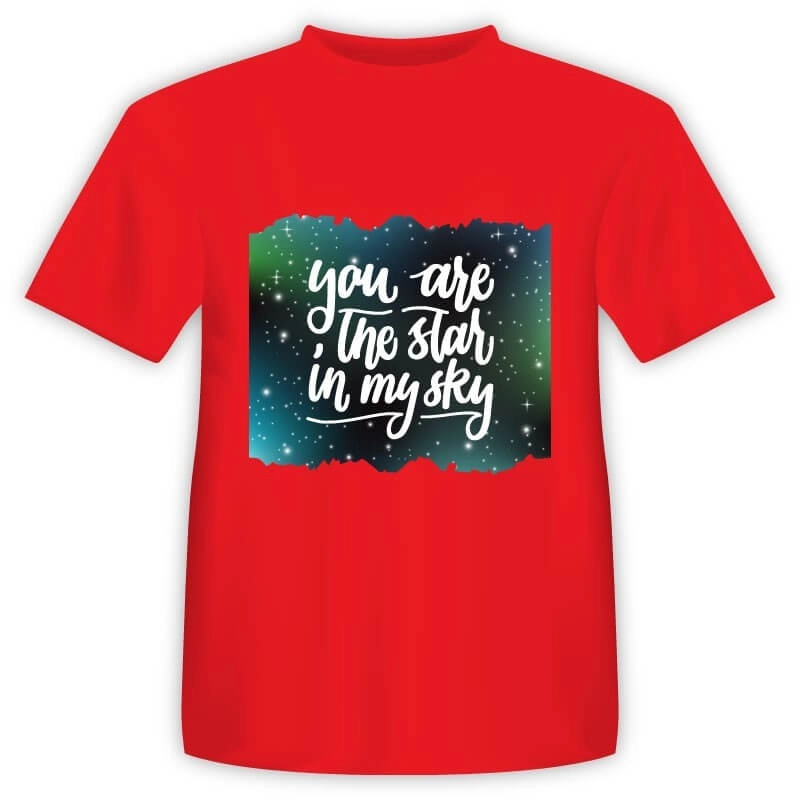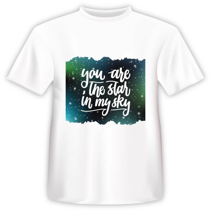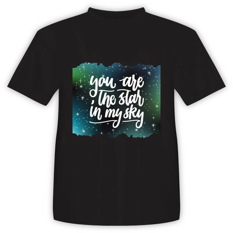 Τα T-shirt Star in my Sky, ήρθαν και θα σας εντυπωσιάσουν με την ευρεία γκάμα σχεδίων και χρωμάτων. T-shirt Star in my Sky, για ανθρώπους κάθε ηλικίας. Με διαφορετική θεματολογία που απευθύνεται σε όλες τις ηλικίες. Φορέστε ένα T-shirt Star in my Sky και προβάλλετε με μοναδικό και ταυτόχρονα πρωτότυπο τρόπο το μήνυμά σας στους γύρω σας. Τα T-shirt Star in my Sky, είναι 100% βαμβακερά και υψηλής αντοχής στο χρόνο.