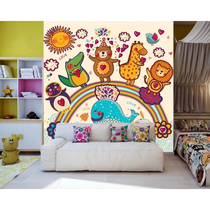 Οι παιδικές φωτοαπετσαρίες με ζωάκια στο ουράνιο τόξο, αποτελούν την πιο έξυπνη αλλά και οικονομική λύση για την διακόσμηση των παιδικών δωματίων, μεταμορφώνοντας ριζικά τον χώρο σας.