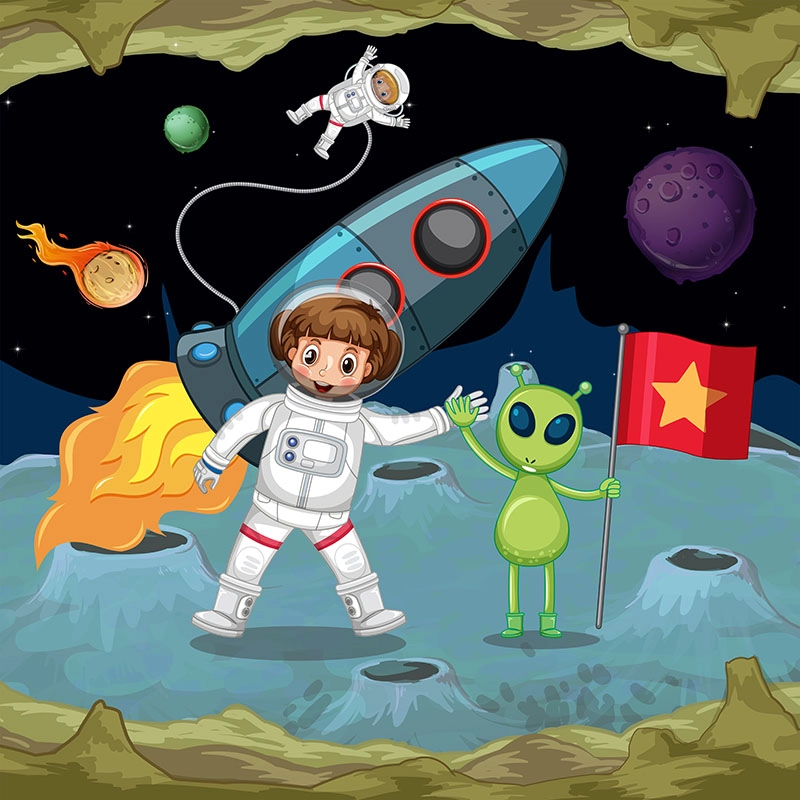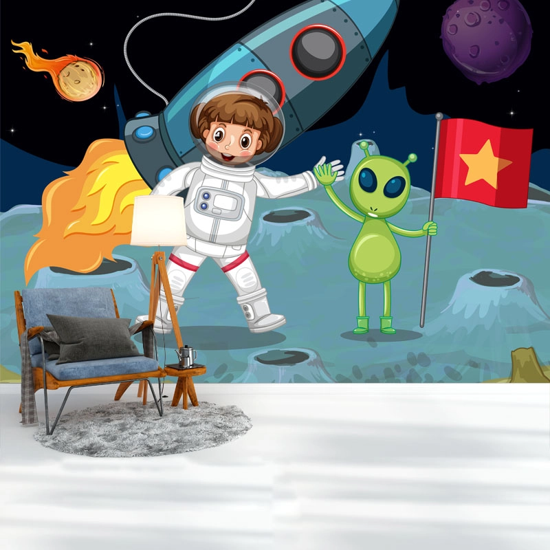 Ταπετσαρία τοίχου Χαρούμενοι Αστροναύτες και Εξωγήινοι