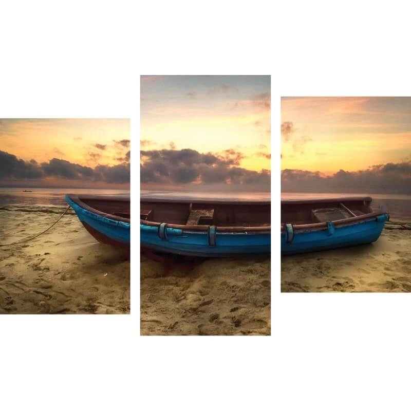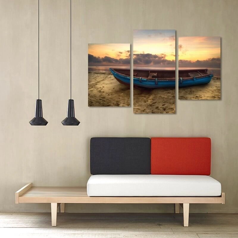 Συμβουλές διακόσμησης με Τρίπτυχος πίνακας σε καμβά Bάρκα στην Αμμουδιά
