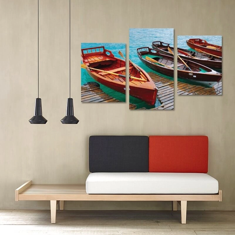 Συμβουλές διακόσμησης με Τρίπτυχος πίνακας σε καμβά Βάρκες με κουπιά